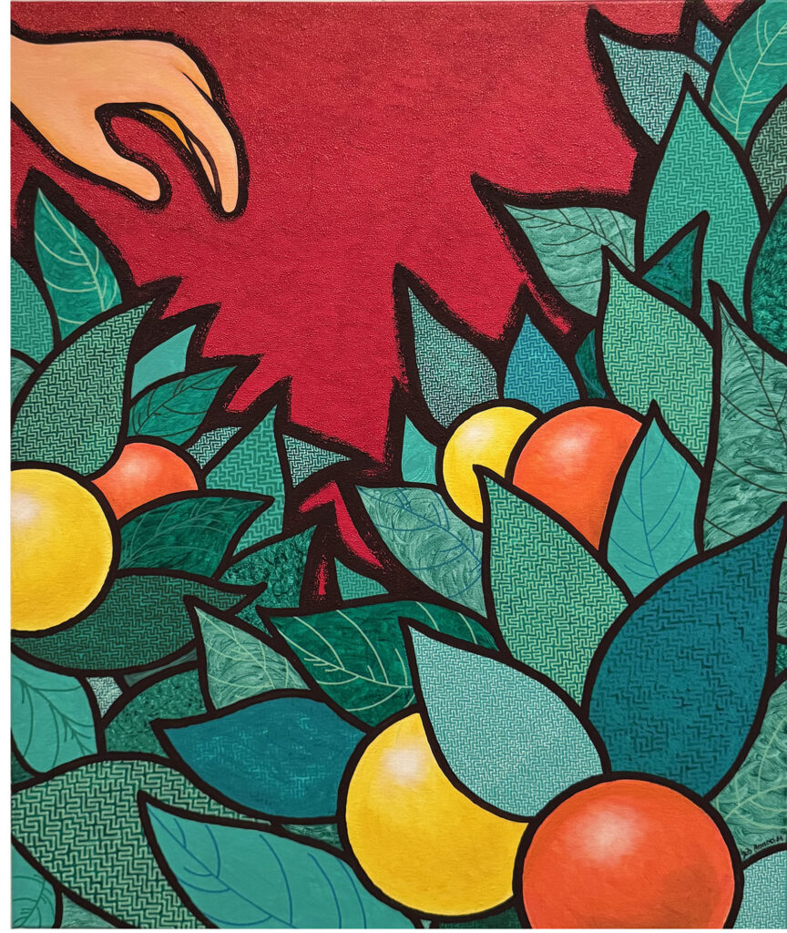どれにしようかな -Chercher des fruitsキャンバスに油彩とアクリル46.0 ✕ 55.0 cm -