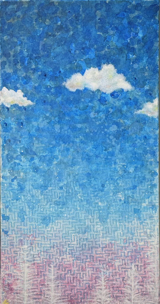 Le ciel qu’on a contemplé – 君と見た空キャンバスにアクリルとパステル30.0 ✕ 30.0 cm -